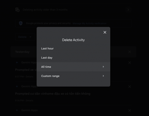 Cách xóa lịch sử trò chuyện với Gemini trên tài khoản cá nhân